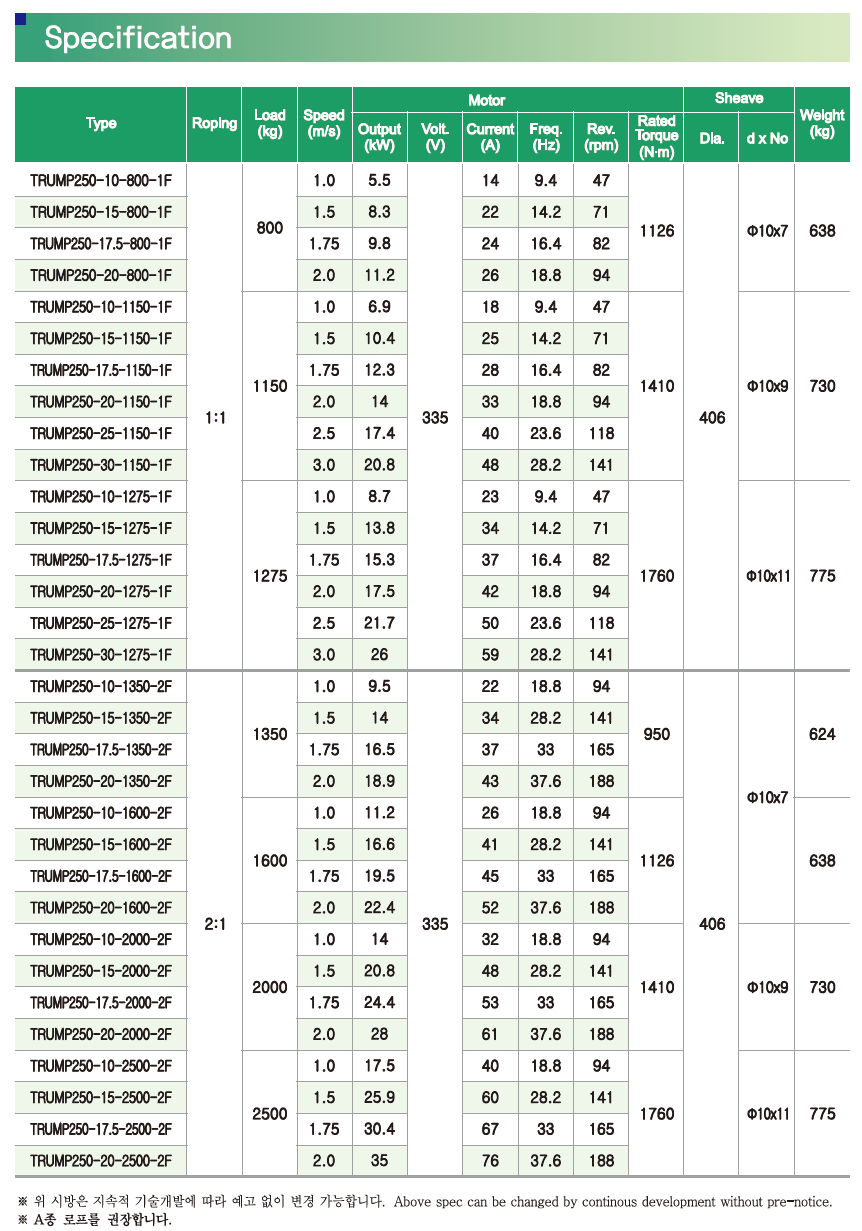 home> 제품소개 > Gearless Traction Machine > TRUMP250 series